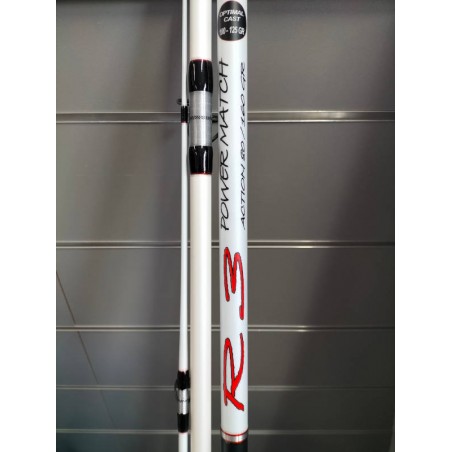 Canna in tre pezzi per la pesca a Surfcasting di Medfishing, 4.50mt di lunghezza è la più leggera della serie Rod Power infatti la potenza va da 80gr a 160gr con un optimum cast di 100-125gr, carbonio alto modulo e una vetta in cabonio pieno biconico, per garantire un'azione continua nel primo pezzo, salvaguardando la sensibilità ed esaltare le "mangiate" del pesce. Rifiniture eccezzionali, doppia legatura per gli anelli, che sono Fuji Alconite serie K color smoke gun, placca del mulinello anchessa Fuji, insomma il massimo di qualità dei componenti per assemblare una canna fantastica, semplice da lanciare, leggera, sensibile ed esteticamente ineccepibile. Peso 500gr.
